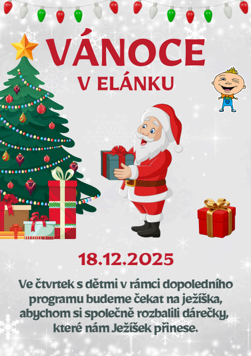 Ve čtvrtek 18.12.2025 s dětmi v rámci dopoledního programu budeme čekat na ježíška, abychom si společně rozbalili dárečky, které nám Ježíšek přinese.