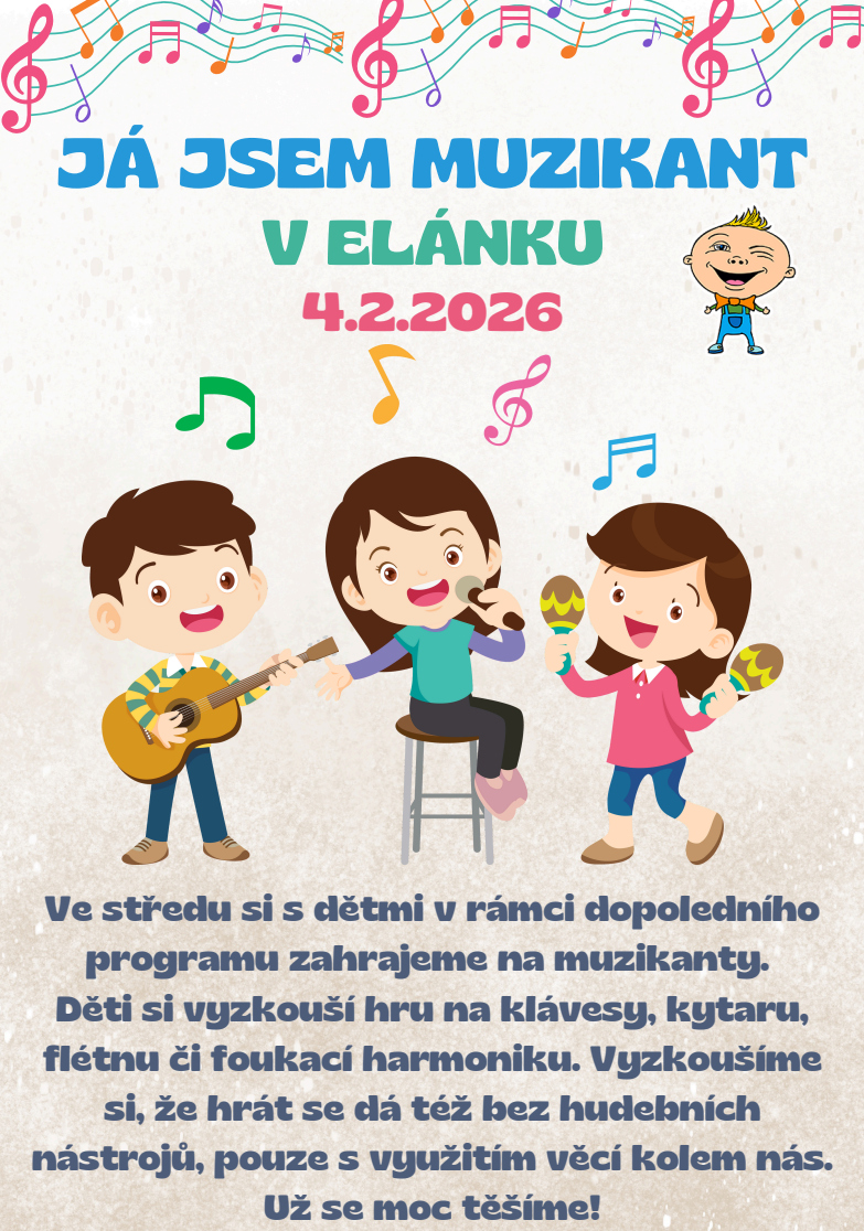 Ve středu 4.2.2026 si s dětmi v rámci dopoledního programu zahrajeme na muzikanty.