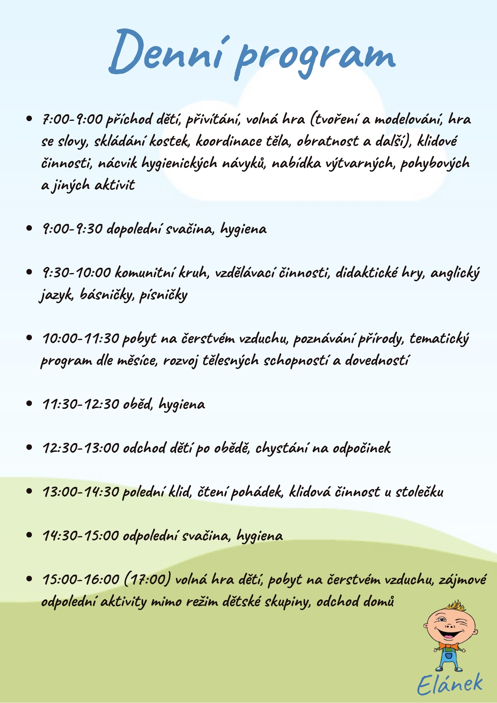 příchod do školky: 7:00 - 9:00