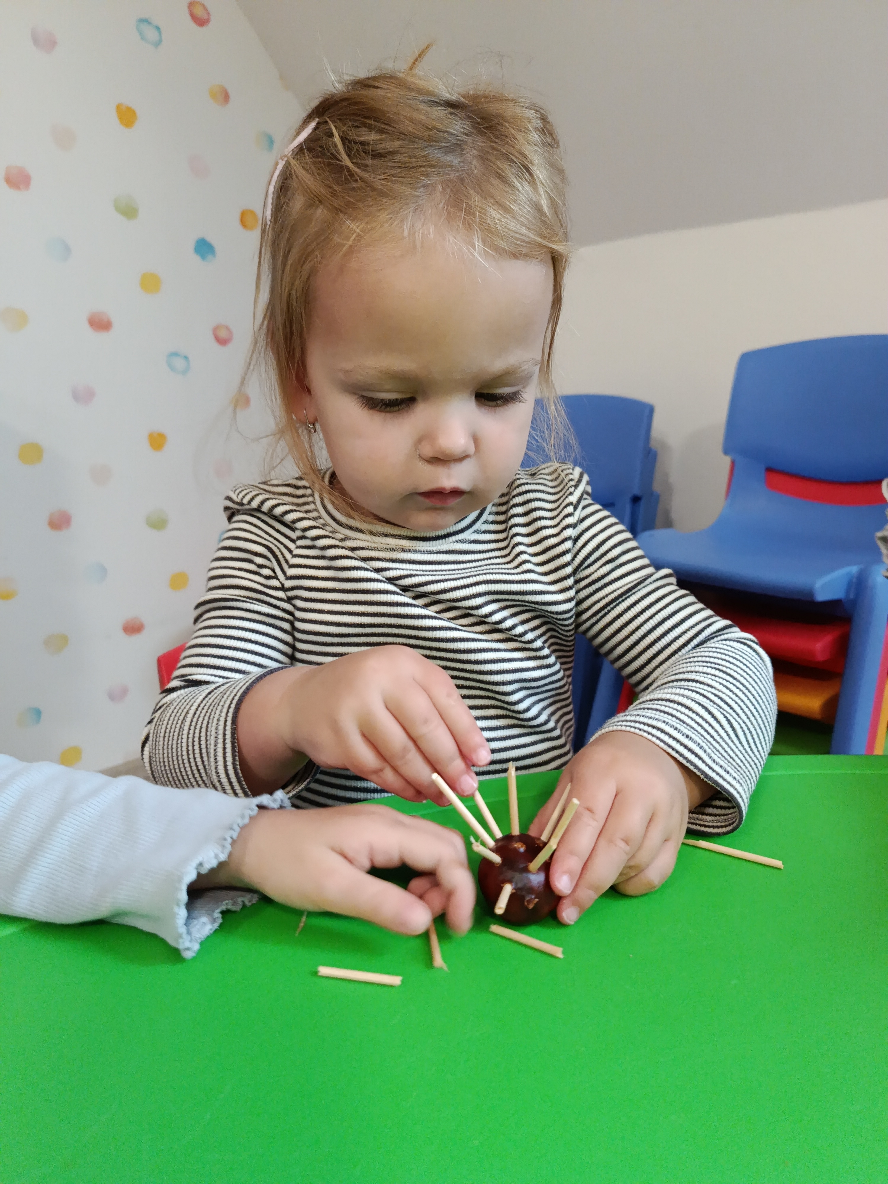 V tomto týdnu jsme nasbírali plody podzimu a vytvořili z kaštanů zvířátka.?? Ukázali jsme si, jak vypadá oheň, voda, země a vzduch. Namalovali jsme si oheň, udělali pokusy a trénovali procházku městem.