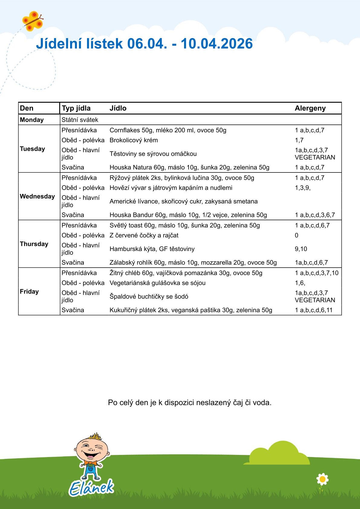 -jídla jsou podávána 3x denně: dopolední přesnídávka, oběd, odpolední svačina