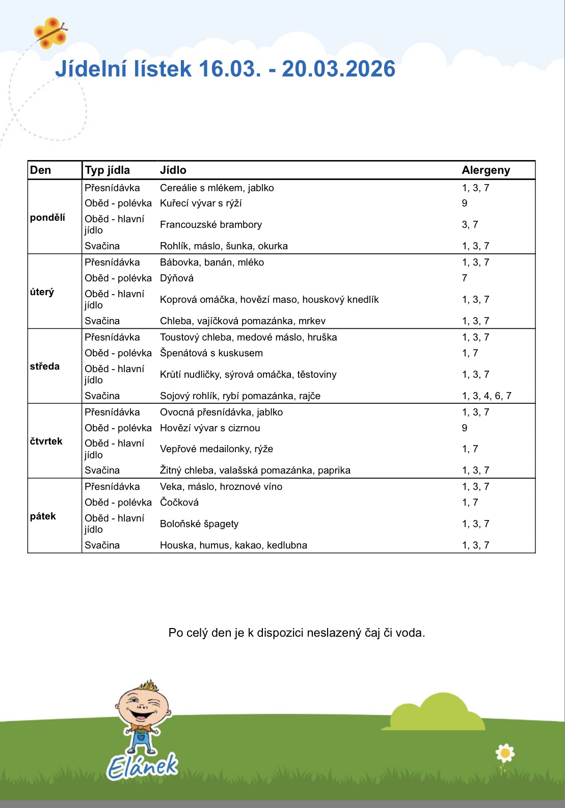 -jídla jsou podávána 3x denně: dopolední přesnídávka, oběd, odpolední svačina