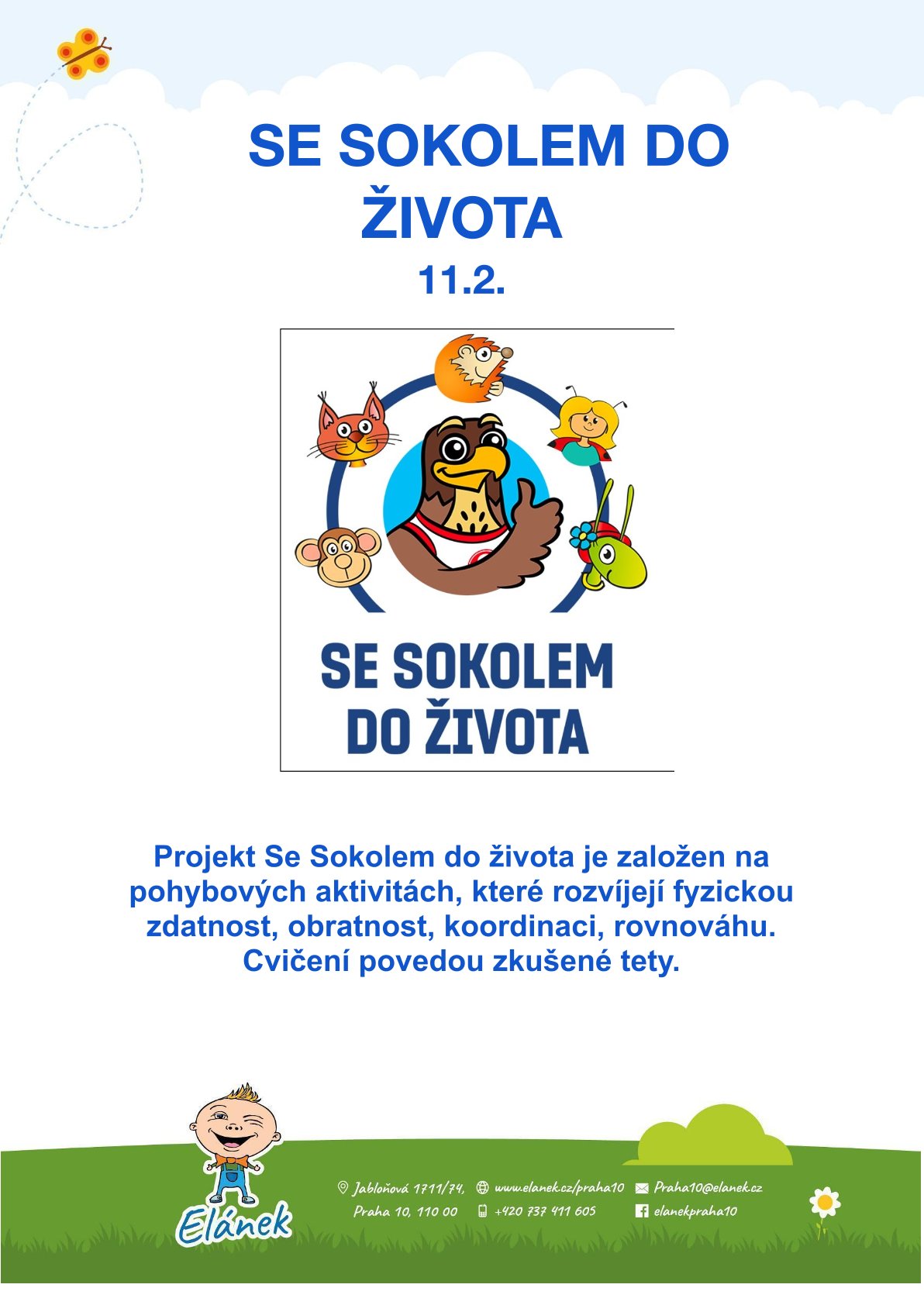 Projekt Se Sokolem do života je založen na pohybových aktivitách, které rozvíjejí fyzickou zdatnost, obratnost, koordinaci, rovnováhu.
