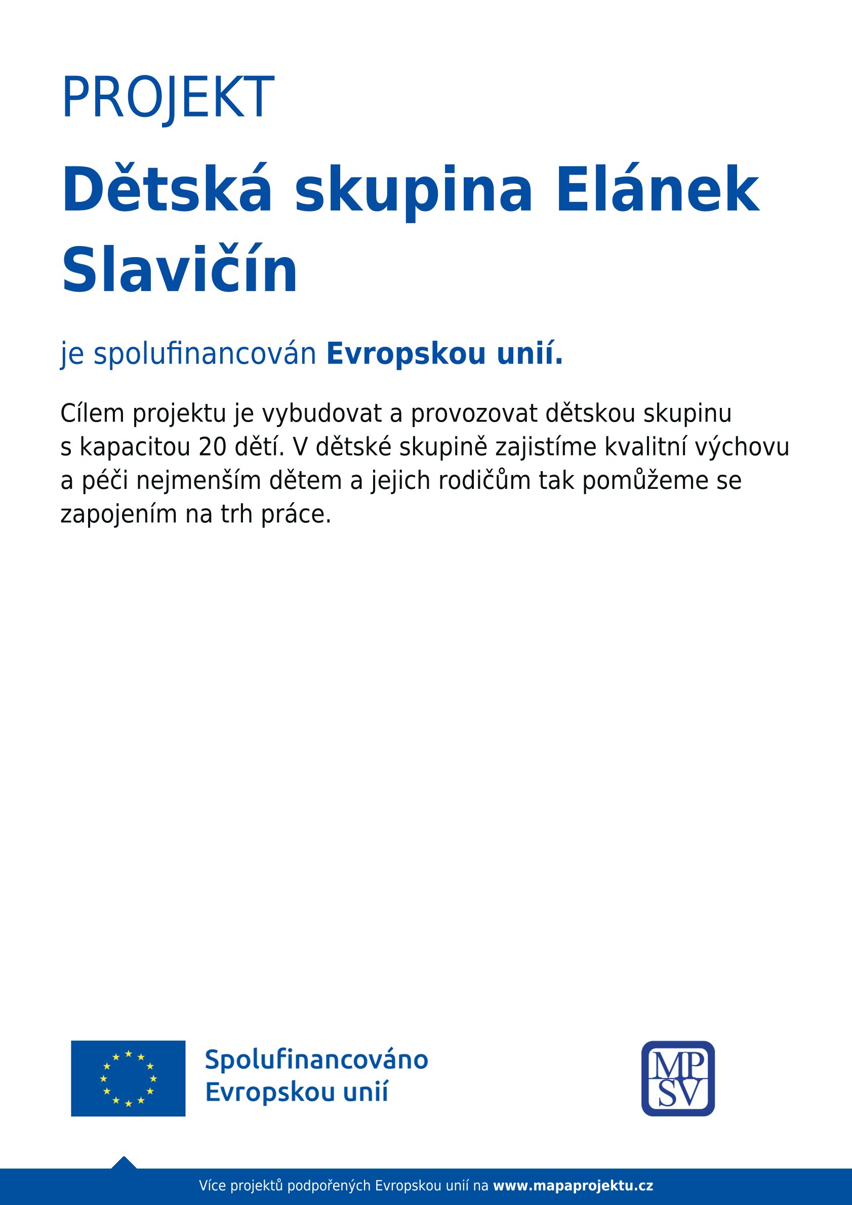Provoz DS je financován z Operačního programu Zaměstnanost.